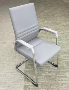 131C Premium Gray Visitor Chair – PU Leather with Chrome Base for Office & Reception Seating