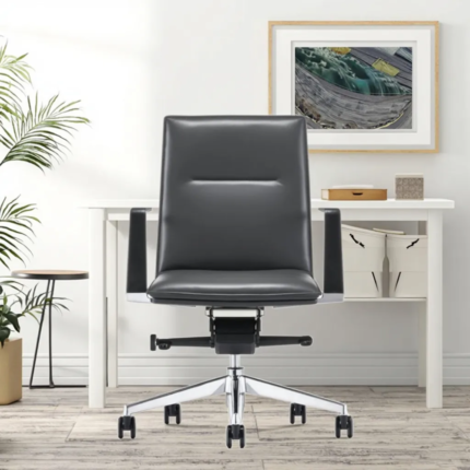 • 💼 Executive Style: Sleek mid-back design with a luxury chrome-finished back frame