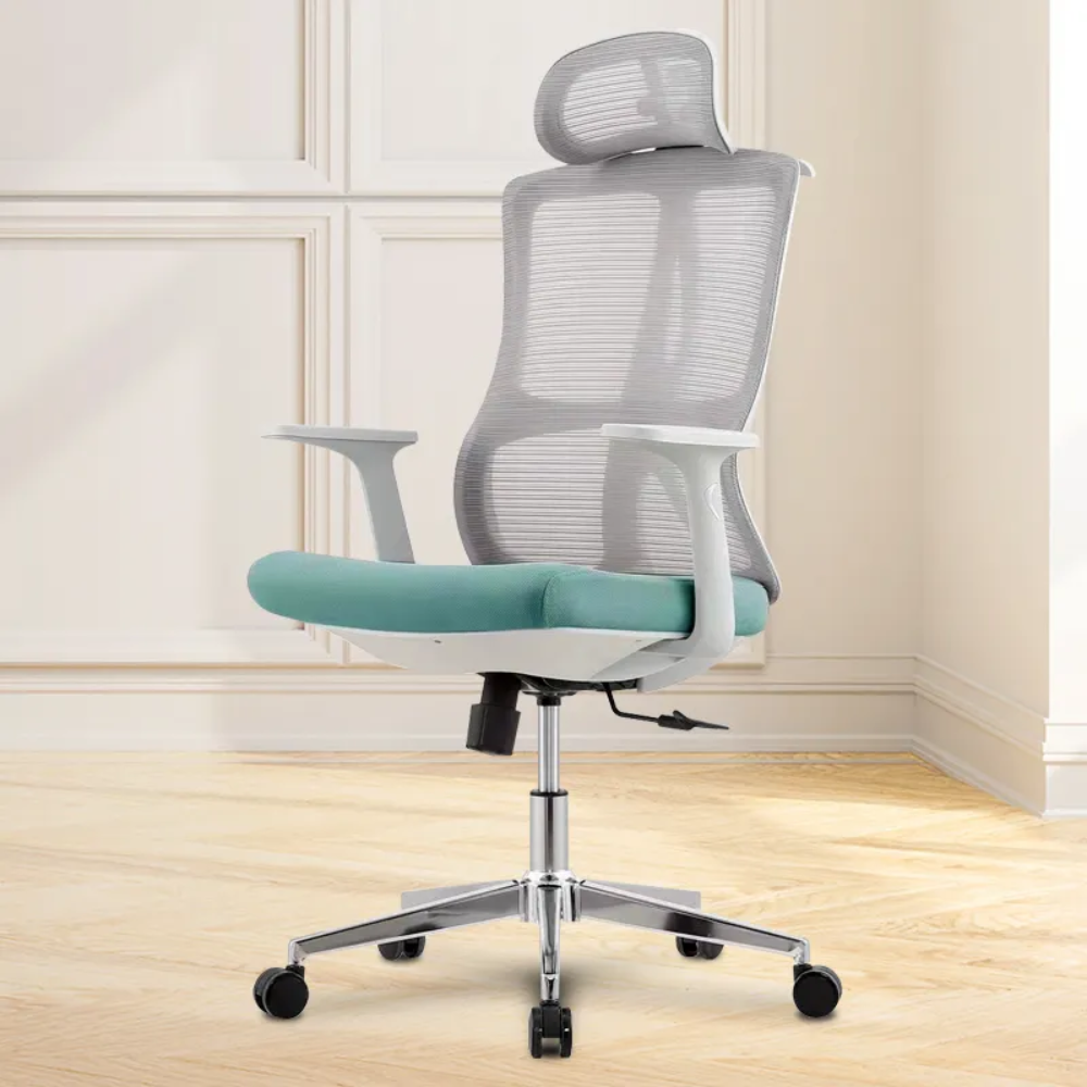 2327A White Frame Grey High Back Office Chair – Ergonomic Mesh Back, 3D Armrest, Adjustable Swivel CEO Chair