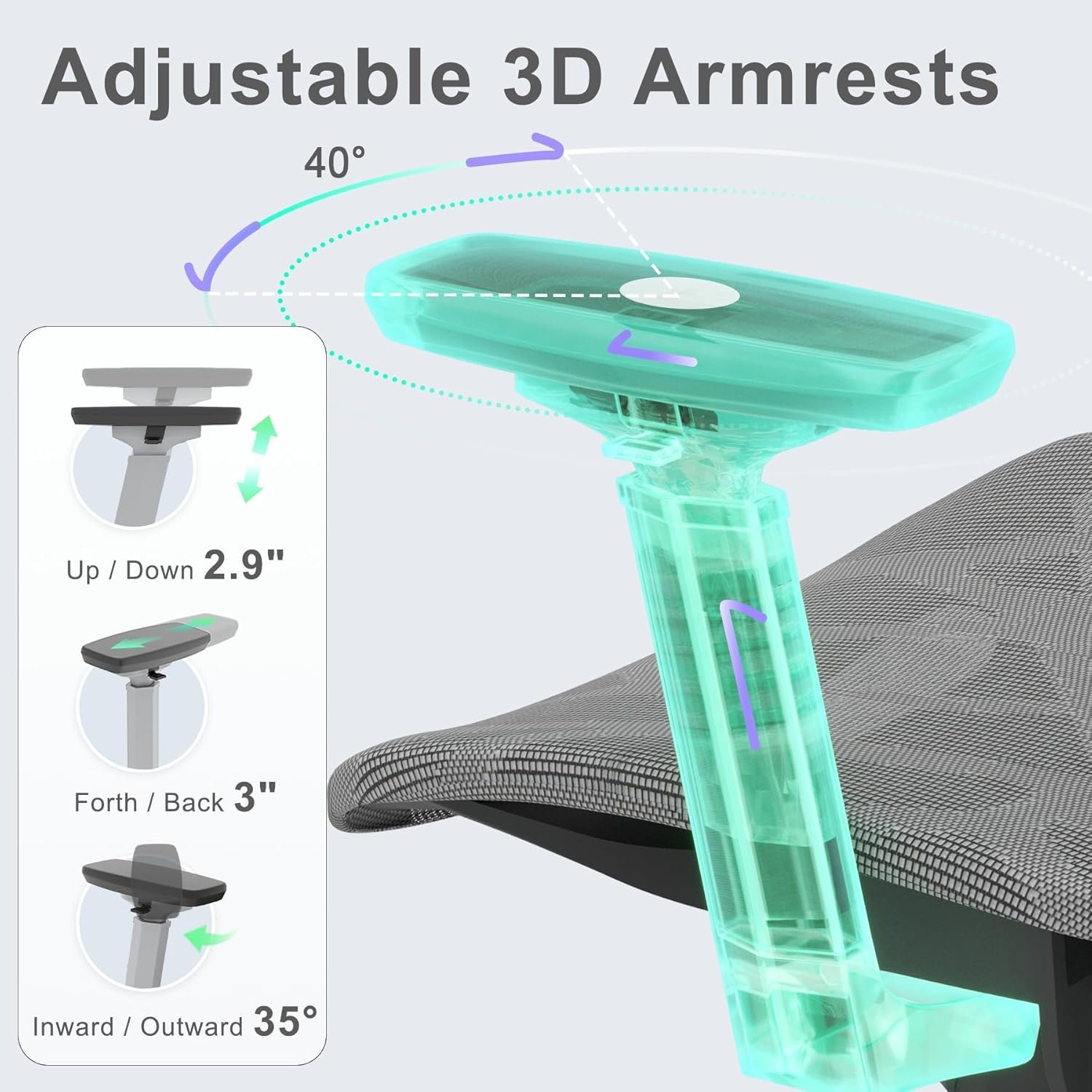 ✅ Adjustable 3D armrests for personalized comfort 👐