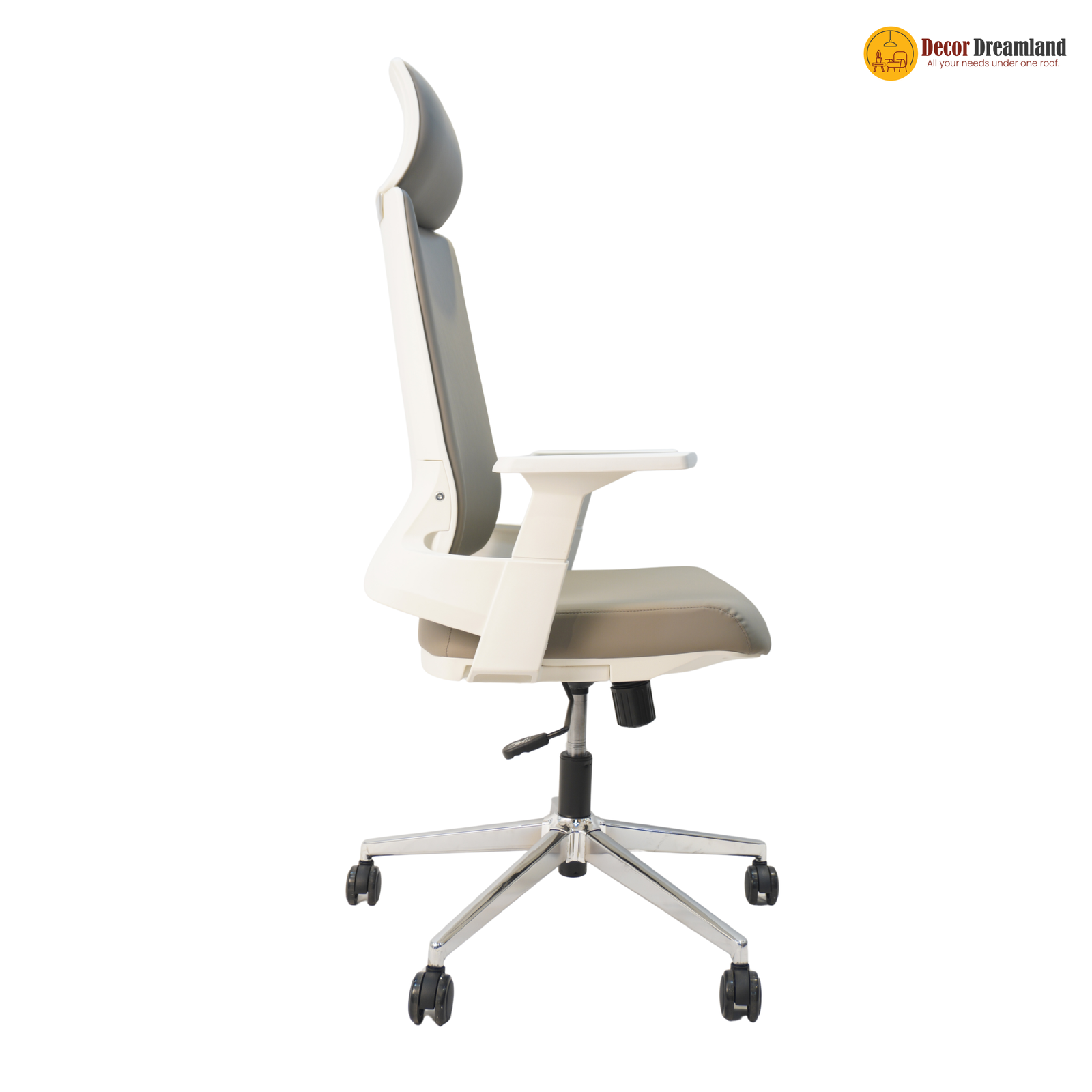 🪑 MD 2202 A – Modern Ergonomic Executive Office Chair | Moulded Foam | White Nylon Frame | Chrome Base with Noiseless Casters