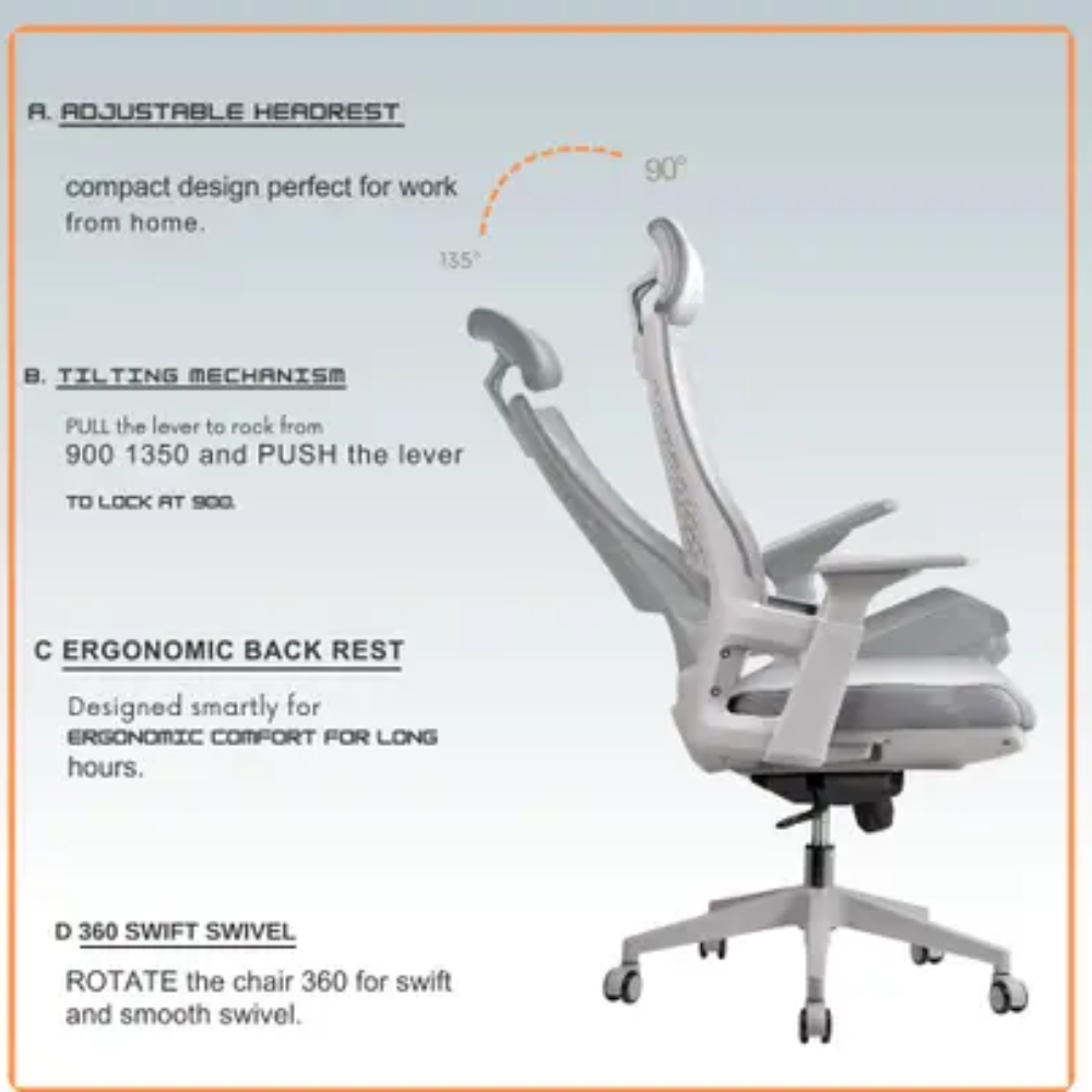 ✅ Sleek white frame paired with elegant grey mesh 💼