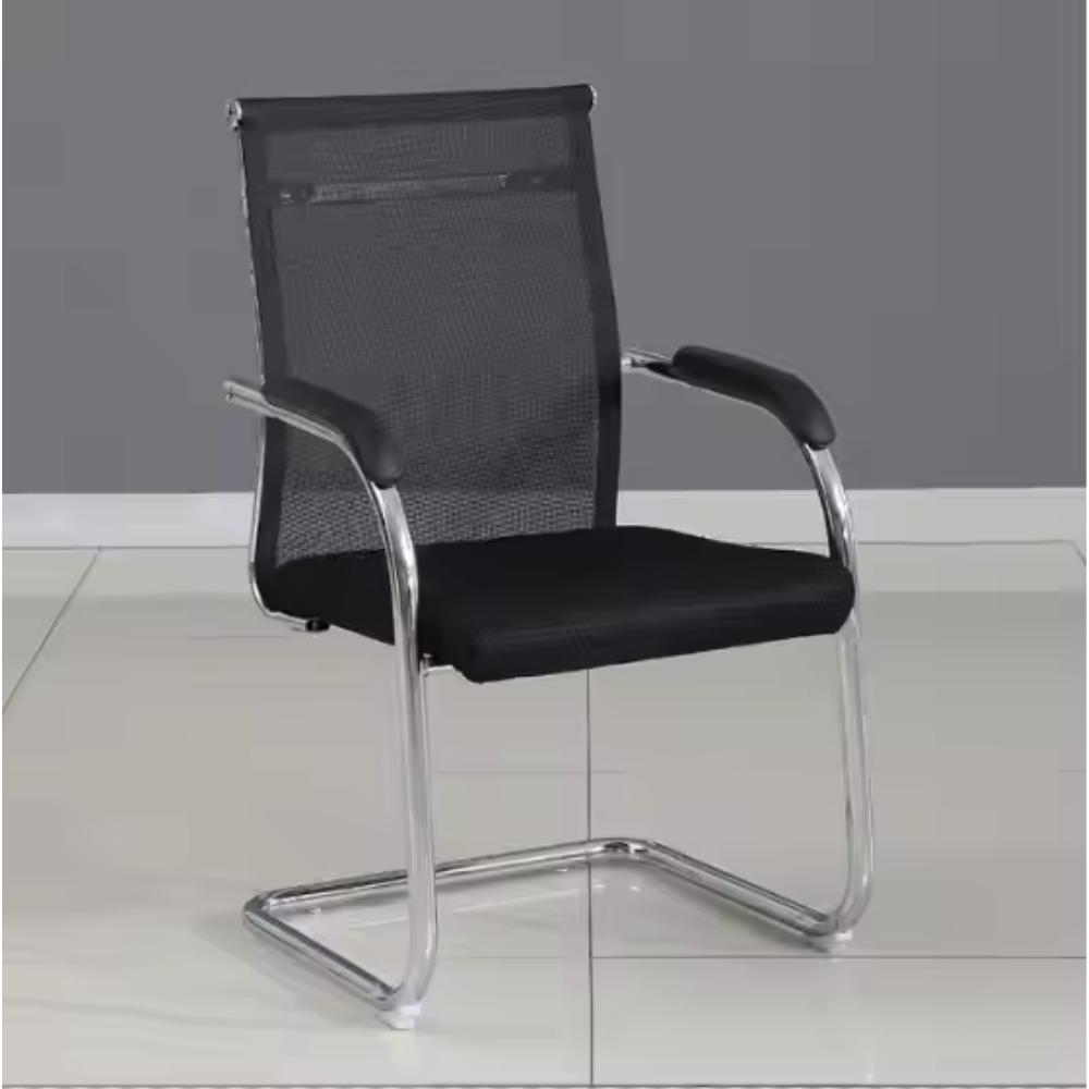 4009-Black Visitor Chair – Breathable Mesh Back, Foam Cushion, Steel Frame & PP Armrest